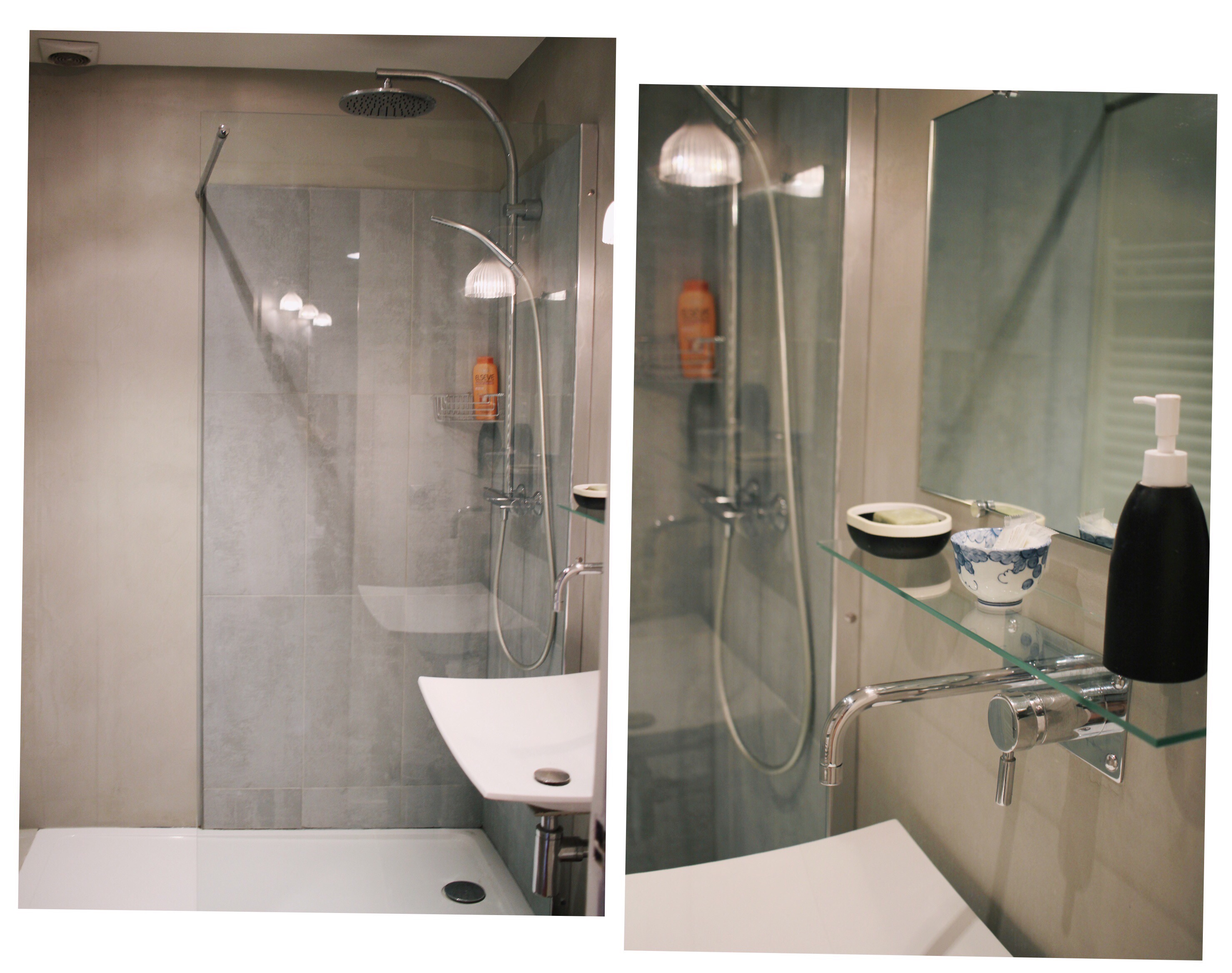 Man hat in der Wohnung gemerkt, dass jemand ein Händchen für Kunst und Design hat. Überall standen Gemälde rum oder hingen an der Wand. Die Nachttischlampe ähnelte einem Kunstwerk und das Interiordesign der Wohnung hatte einen roten Faden. Das hat mir sehr gefallen. In der Wohnung war alles vorhanden, was man zum Leben braucht. Es war wie ein zweites zu Hause. Handtücher, Fön, Waschmaschine, Töpfe, Besteck, Seife, usw. Es fehlte uns an nichts. 😍 Besonders gut hat mir die Regendusche gefallen oder die kleinen französischen Balkons. Auch die verglasten Doppeltüren haben die Wohnung zu etwas Besonderem gemacht.