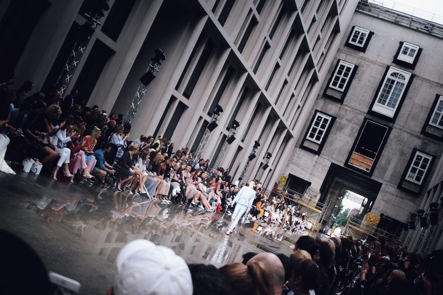Der nasse Look passte tatsächlich sehr gut zu dem Wetter an diesem Tag. Die Show fand ebenfalls im Freien statt und leider hat der Wettergott nicht so mitgespielt, wie Marina es sich vielleicht anfangs gewünscht hatte. Kurz vor der Show fing es an literweise zu schütten und der ganze Laufsteg stand unter Wasser. Das Team hat wirklich ganze Arbeit geleistet und in kürzester Zeit, alles wieder hergerichtet. Der nasse Boden hat die Show ganz besonders gemacht und es schien so, als wenn es genauso sein sollte. Und die Frisur – die passte perfekt!