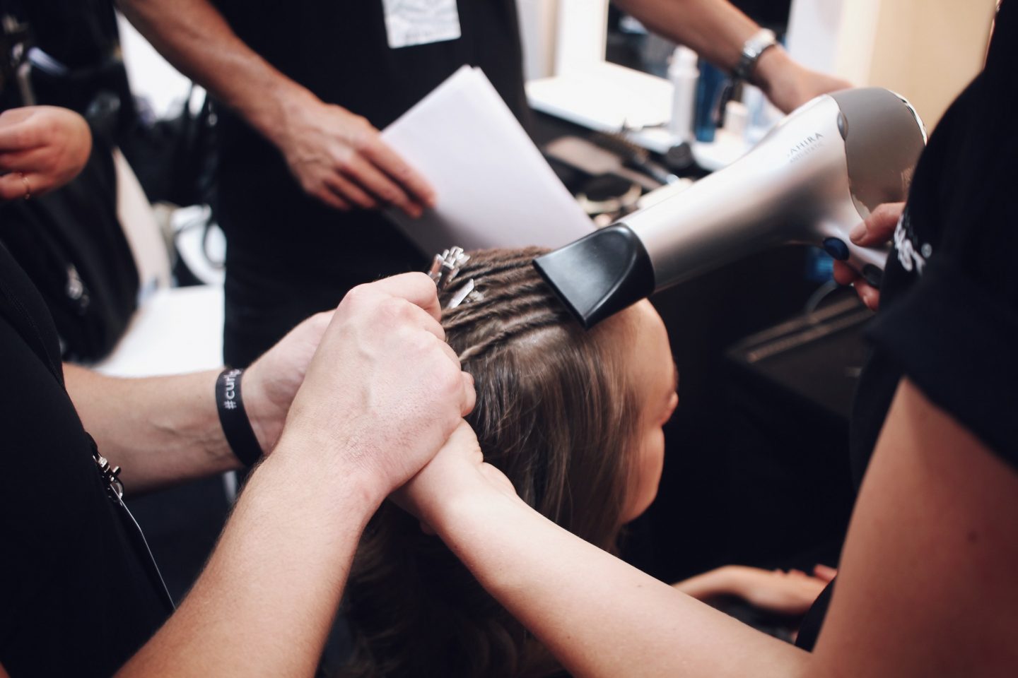 Heute geht es um Frisuren, Mode und ganz viele tolle Momente. Ich durfte nämlich während der Fashionweek mit Wella und Sebastian Professional backstage im Berliner Modesalon sein – während die Models für den Laufsteg schick gemacht wurden. Wenn man nicht selbst Designer, Model oder Stylist ist, weiß man sicherlich nur aus dem Fernsehen, wie es hinter den Kulissen aussieht. Live dabei zu sein, war eine wirklich spannende Erfahrung und davon erzähle ich euch heute. Es war beeindruckend, wie viele Menschen gleichzeitig strukturiert unter Zeitdruck arbeiten müssen, um ein tolles Ergebnis zu erreichen.